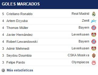 Chicharito se une a Artem Dzyuba, Thomas Müller y Robert Lwandowski en la lucha por alcanzar a Cristiano Ronaldo que tiene cinco anotaciones. Hernández anotó un gol ante el BATE y tres a la Roma.