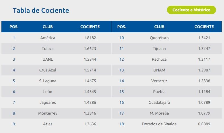 Tabla del Descenso Liga Mx – Foto Ligamx.net