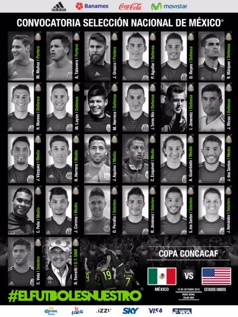 Esta noche, a través de redes sociales, se dio a conocer a los jugadores que son convocados para el partido contra Estados Unidos por la Copa Concacaf que da el pase a la Confederaciones de Rusia 2017.
