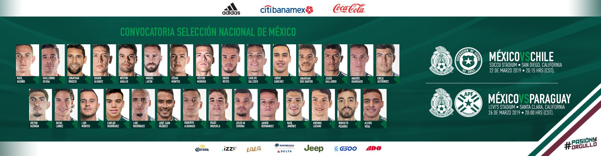 La Dirección de Selecciones Nacionales dio a conocer la lista de jugadores convocados por el Director Técnico de la Selección Nacional de México, Gerardo Martino, para los partidos de la próxima Fecha FIFA ante Chile y Paraguay,  a jugarse los días 22 y 26 de marzo en San Diego y Santa Clara, respectivamente.