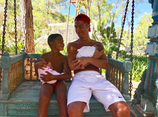 Luego de abandonar el concentración de Portugal en la Copa Confederaciones antes del partido por el tercer lugar frente a México, el astro del Real Madrid conoció a sus dos nuevos hijos, los gemelos Mateo y Eva.