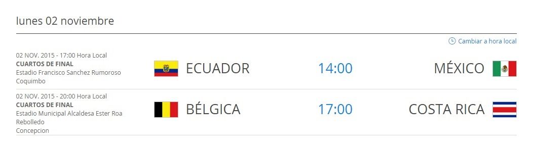 Por último, la Selección Mexicana, quien viene de vencer contundentemente a los locales por 4-1, y es uno de los grandes favoritos a ganar esta justa, se verá las caras a su similar de Ecuador, quien goleó por la misma cantidad de goles a Rusia. El Tricolor jugará el lunes 2 de noviembre a las 17:00 h (horario local) en el Francisco Sánchez Rumoroso, en Coquimbo.