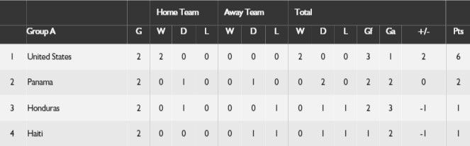 Con esta victoria, Estados Unidos amarró su pase a la siguiente ronda de la Copa Oro y se queda con el liderato del Grupo A, mientras que Haití, Hondura y Panamá pelearán por seguir con vida en el torneo en su siguiente compromiso.