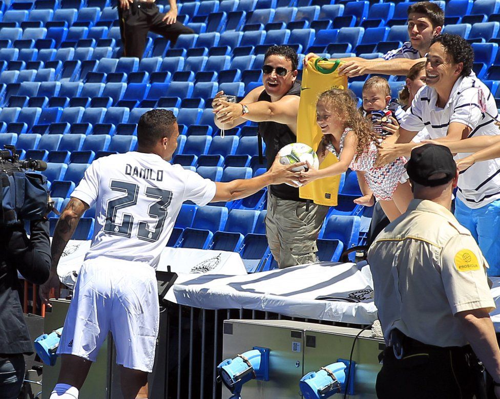 Esta mañana el Real Madrid presentó al lateral derecho brasileño Danilo como su nuevo jugador en el Santiago Bernabéu.