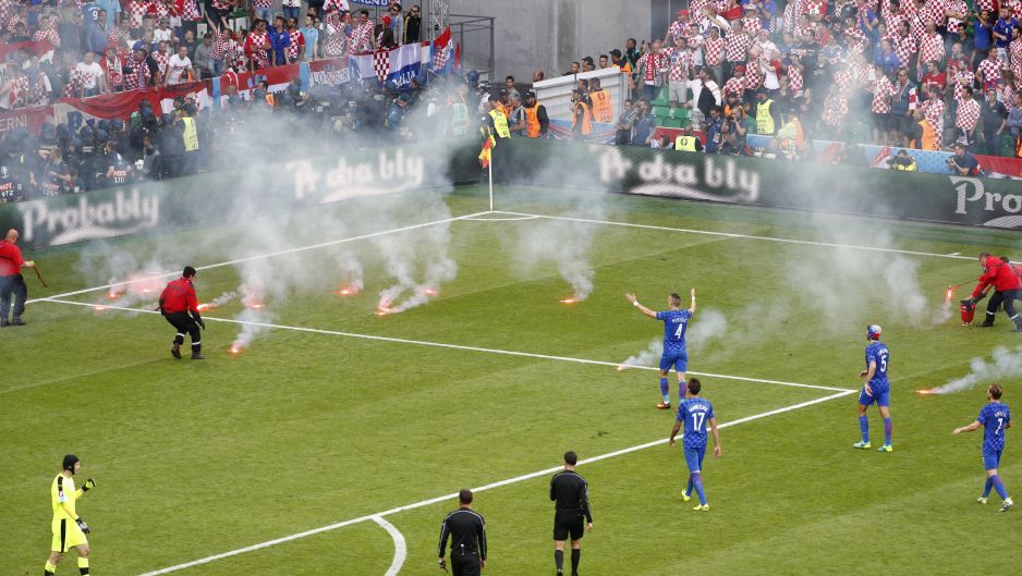 Cuando ocurrió el lanzamiento de las bengalas, seguido de un petardo que explotó cerca de una de gente del staff que intentaba apagar el fuego, la selección de Croacia ganaba 2-1, pero los checos los tenían contra las cuerdas. Luego de que reanudó, se marcó un penalti a favor de la República Checa, que sacó el empate al minuto  cuatro del tiempo agregado.