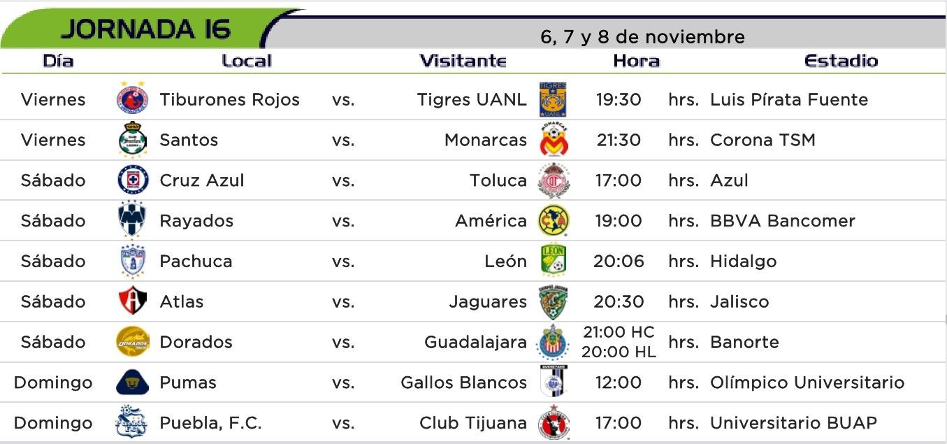 Para el sábado, destaca la visita que realizará América a la “Sultana del Norte” para verse las caras con Monterrey, a las 19:00 h.