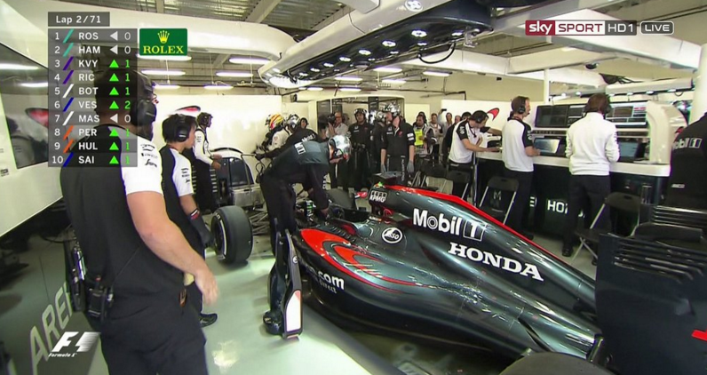 “Se acabó la carrera, he perdido poder, creo que tendré que regresar”, fueron las palabras con las que el titular de McLaren avisa a su escudería la decisión de volver al garaje y concluir ahí su participación en el GP México.
