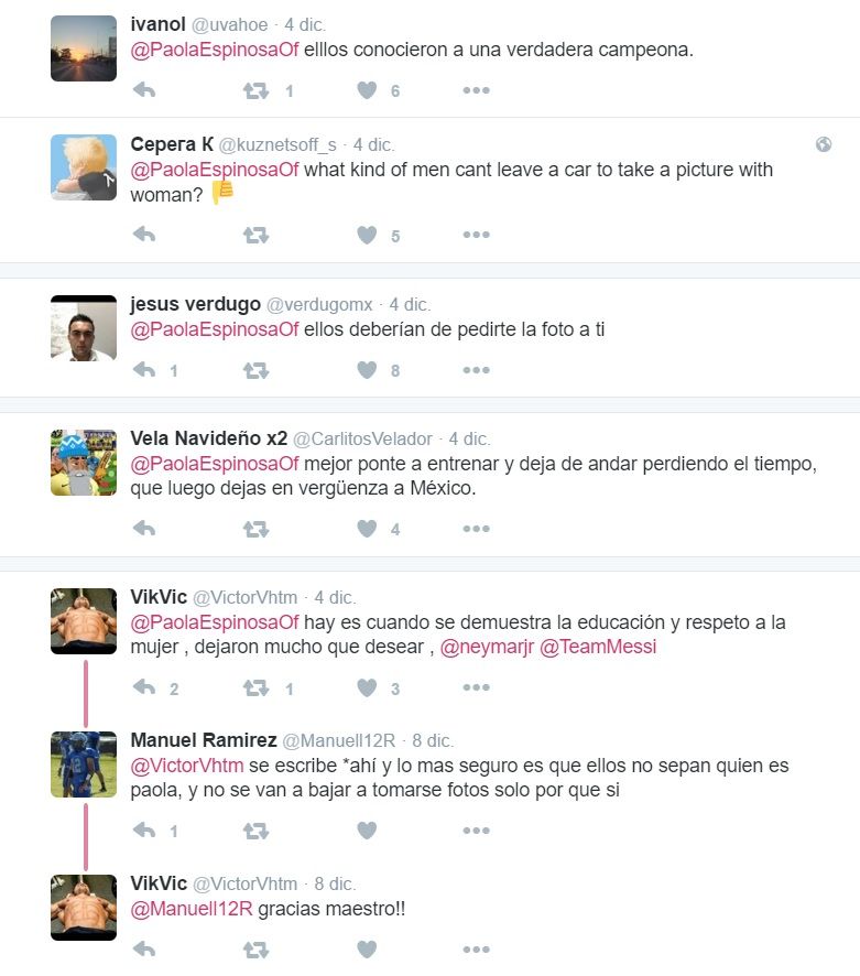 También, como es normal en redes sociales, algunos defendieron a los futbolistas, al tiempo que algunos, aunque una minoría notable, atacaron a Paola Espinosa.