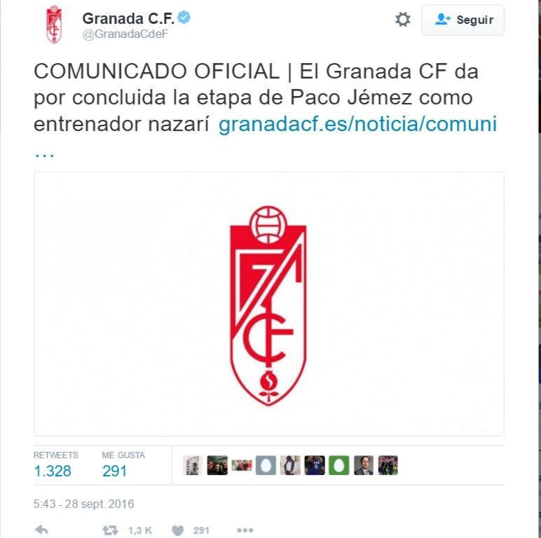 El día de hoy el Club Granada, donde milita el mexicano Guillermo Ochoa, ha anunciado la destitución de Paco Jémez como su director técnico luego del mal paso que lleva en la temporada.