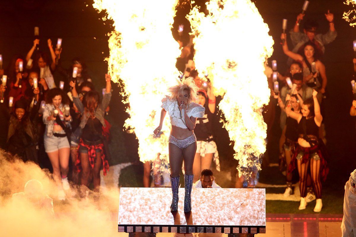 La cantante Lady Gaga creó un despliege tecnológico en el centro del campo