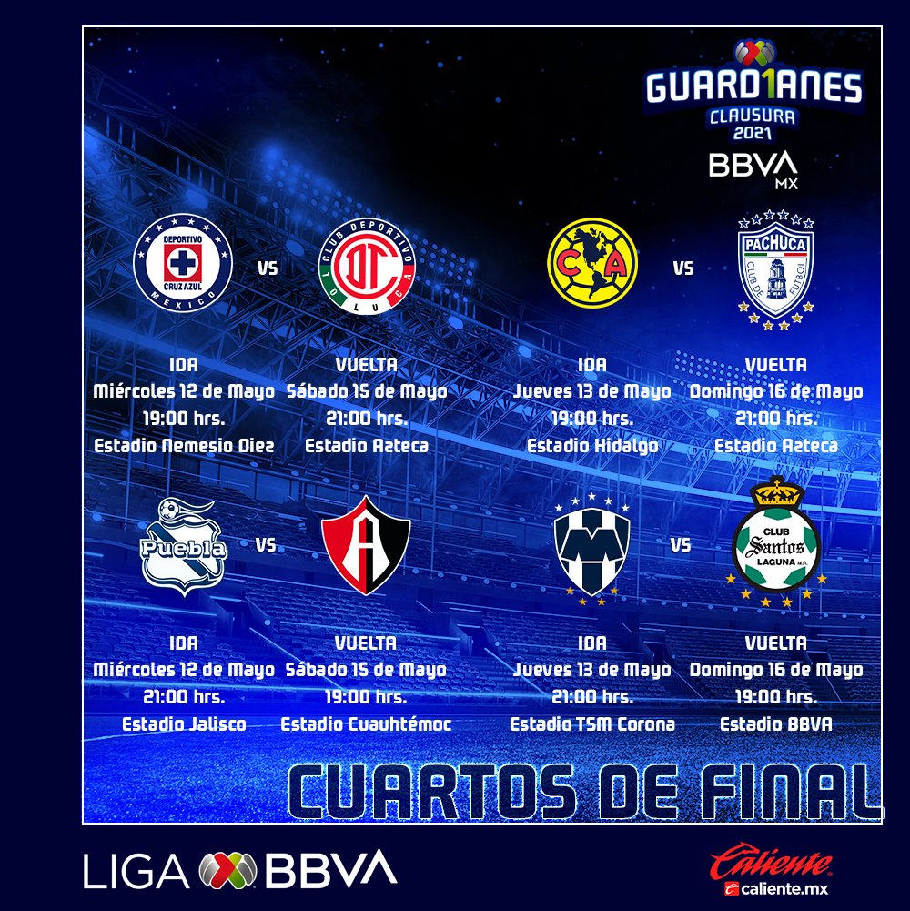 La liguilla será inaugurada en el Estadio Nemesio Díez, cuando Toluca reciba a Cruz Azul el miércoles a las 19:00 h.