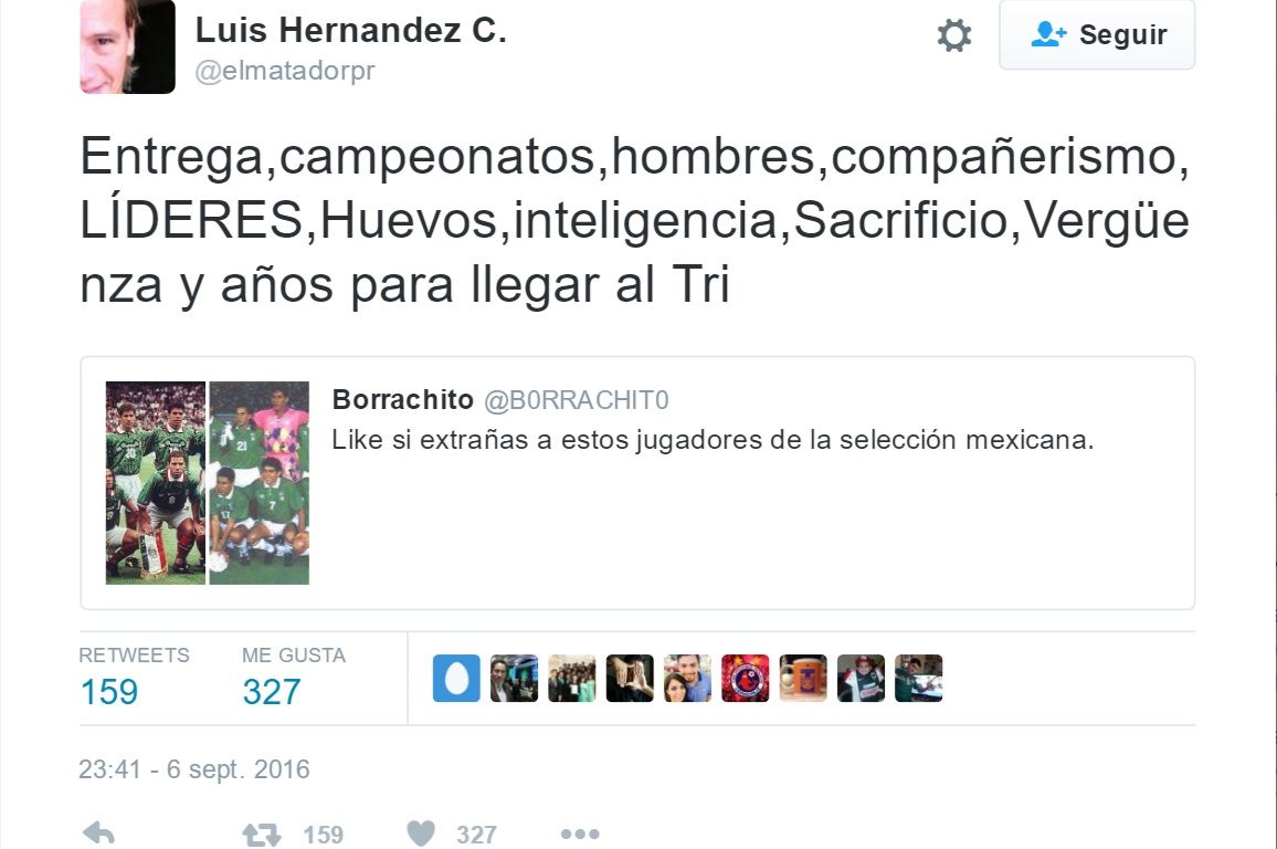 El Matador, uno de los grandes referentes del Tri en la década de los noventa, a través de su cuenta de Twitter afirmó que “cualquiera” ahora puede vestir la camiseta de la Selección, cuando hace años era algo que tomaba años.