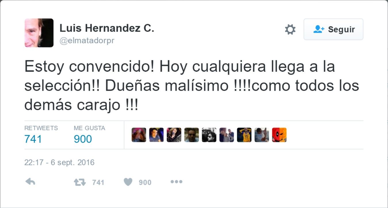 “Estoy convencido! Hoy cualquiera llega a la selección!! Dueñas malísimo !!!!como todos los demás carajo !!!”, escribió en Twitter el exjugador de Cruz Azul, América y Necaxa.