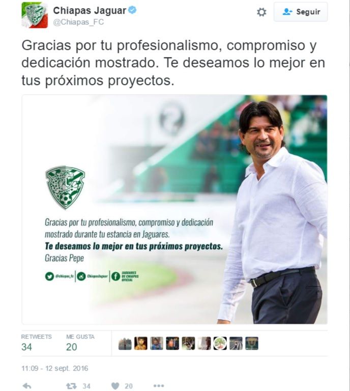 “A partir de estos momentos José Saturnino deja de ser DT de nuestro equipo. Gracias por tu profesionalismo, compromiso y dedicación mostrado. Te deseamos lo mejor en tus próximos proyectos ¡Gracias Pepe!”, señala a través de su cuenta de Facebook.