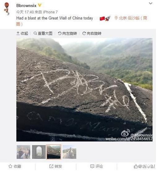 El jugador se encuentra haciendo la pretemporada con su equipo en China. Brown aprovechó su estancia en el país oriental para visitar la Muralla China y para dejar su marca con un gis blanco.