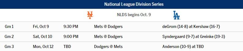 Los Dodgers de Los Ángeles designaron a sus pitchers para los tres primeros juegos contra los Mets de Nueva York por la Serie Divisional de la Liga Nacional.