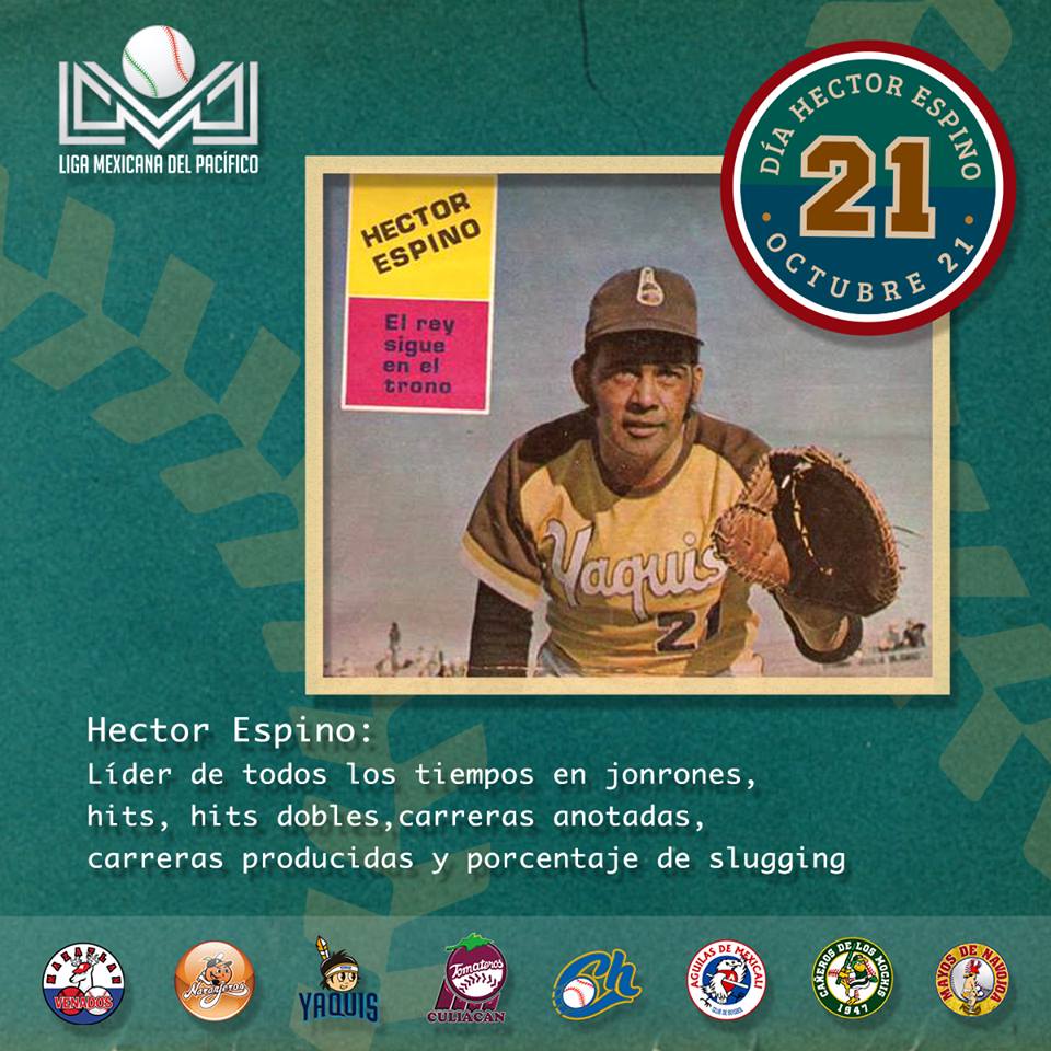La Liga Mexicana del Pacífico (LMP) celebrará a partir 21 de octubre del 2016 el “Día de Héctor Espino”, como homenaje al destacado pelotero chihuahuense, considerado uno de los mejores de todos los tiempos.