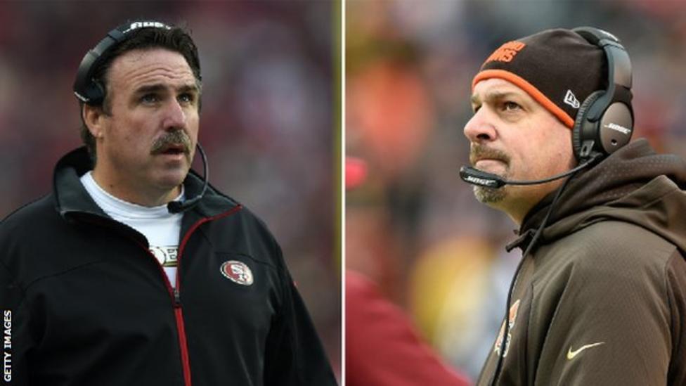 A la izquierda, Jim Tomsula.  A la derecha, Mike Pettine. Foto de BBC