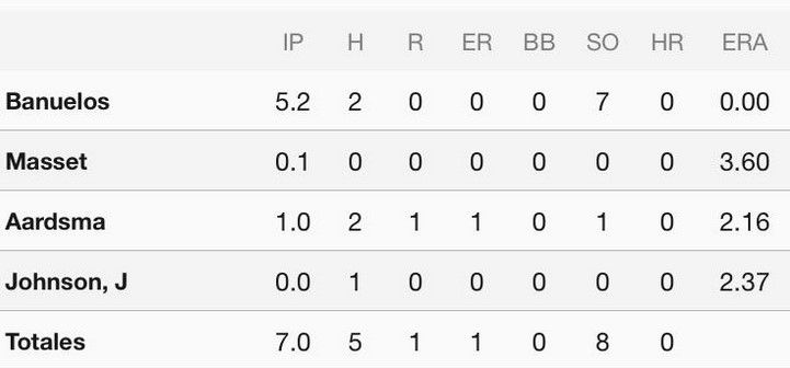 “Manny” Bañuelos, nacido el 13 de marzo de 1991 en el Vergel, Durango, estuvo en el montículo del Turner Field durante cinco entradas y dos tercios, en los que apenas recibió dos hits, sin dar base por bola y ponchó a siete. Realizó 75 lanzamientos, de los cuales 48 fueron strikes y 27 bolas y tuvo que abandonar el montículo por calambres y deshidratación.