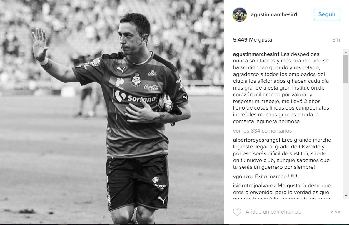 Tras haberse dado a conocer la noticia, Agustín Marchesín mandó un emotivo mensaje a la afición lagunera, con el objetivo de despedirse de ellos y agradecer el apoyo que mostraron durante el tiempo que estuvo en Torreón.