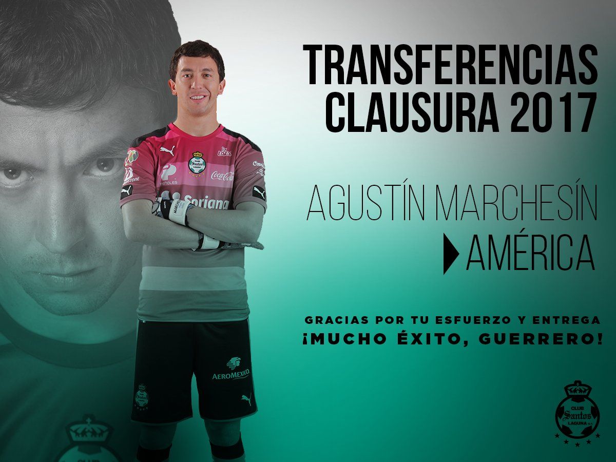 “Anunciamos la transferencia de Marchesín a @ClubAmerica. Gracias por tu esfuerzo y entrega. ¡Mucho éxito, #Guerrero!”, señaló el tuit del club lagunero.