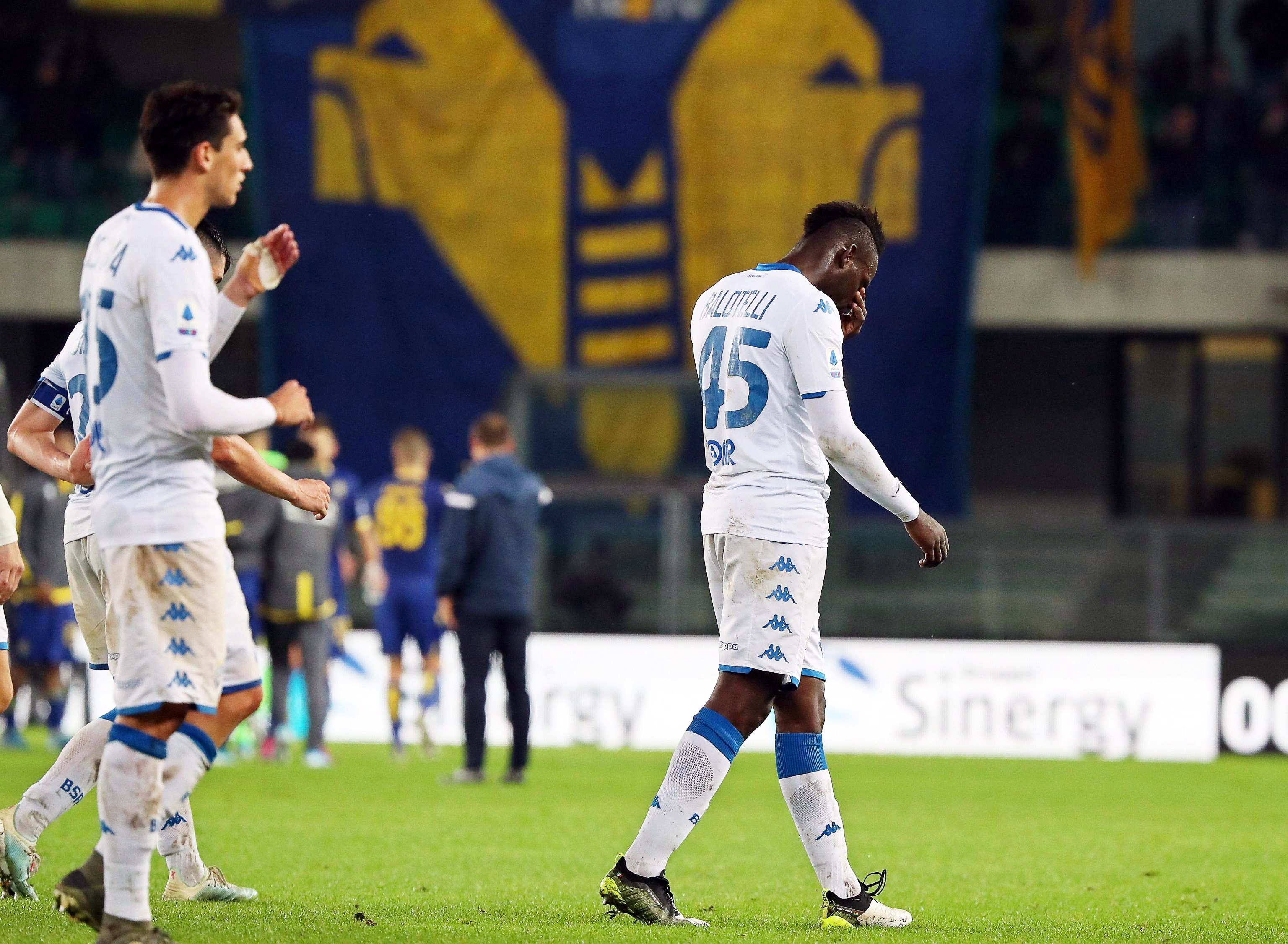 También una parte de la afición veronesa, polémica contra los racistas, empezó a corear el nombre de Balotelli, quien regresó al campo y anotó en el 85 un golazo a la escuadra que matizó la derrota 2-1 del Brescia.