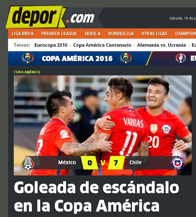 Medios de todo el mundo hicieron eco de la humillación de México ante Chile en la Copa América, al caer 7-0, resultado que muchos calificaron como histórico.