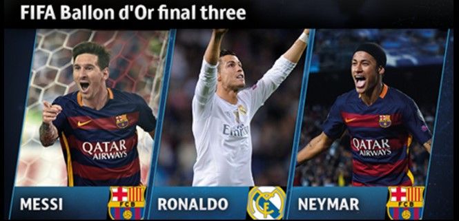 Finalmente no hubo sorpresas y los tres cracks que lucharán por el preciado galardón de entre la lista inicial de 23 nominados son dos barcelonistas, Lio Messi y Neymar, y un madridista, Cristiano Ronaldo.