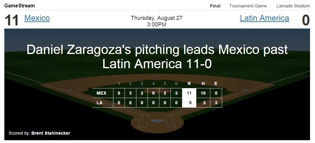 Daniel Zaragoza conectó un doble en la segunda entrada para poner el marcador 2-0. Después en el tercer episodio, Alberto Bustos añadió un doble de que impulsó un par de carreras y un cuadrangular en la quinta entrada. Damián García registró jonrón que catapultó tres carreras.