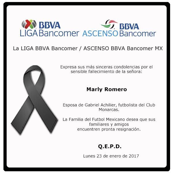 También la Liga MX expresó sus condolencias por la sensible muerte de la esposa del futbolista recién llegado a nuestro país.