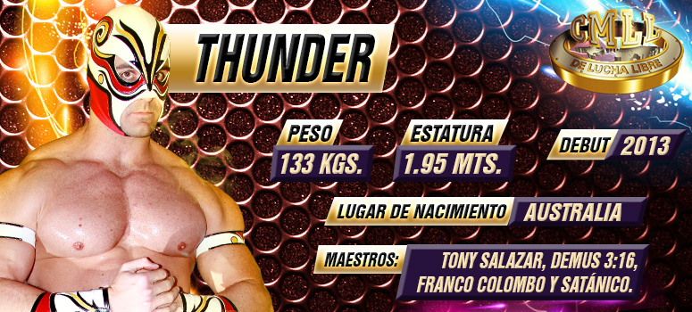 El luchador, cuyo nombre real es Luke Fordward, llegó a México en agosto de 2012 con el nombre de “Mr. 2013” y comenzó a ser entrenado por diversos luchadores profesionales del mismo Consejo. Sin embargo, por problemas con la propiedad de los nombres, terminó por llamarse “Thunder”.