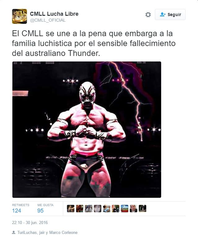Informa el Consejo Mundial de Lucha Libre la muerte del joven luchador australiano Thunder