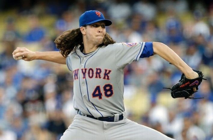 El pitcher abridor de los Mets, Jacob deGrom permitió corredores en cinco de sus seis entreadas, pero solo pudieron anotarle dos carreras, derivados de sencillos remolcadores de Justin Turner y Andre Ethier que dieron la ventaja 2-1 a los Dodgers en la primera entrada.