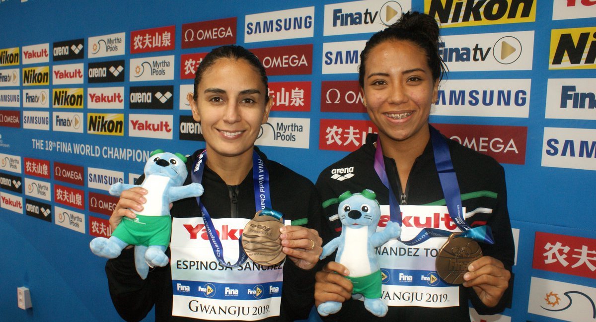 Paola Espinosa y Melany Hernández ganan medalla de bronce y su pase a los Olímpicos de Tokio 2020 en la prueba de clavados sincronizados de trampolín de tres metros en los Campeonatos Mundiales de Natación