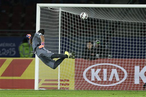 Sergio Romero no pudo detener el remate de Valdés. Foto de AP
