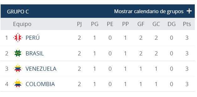 Éste era el resultado que el resto del escuadrón temía, ya que La Bicolor arribó a tres unidades, mismas con las que se quedaron los venezolanos, brasileños y colombianos, por lo que el domingo los cuatro saldrán a matar o morir por un pase a cuartos de final dentro del Grupo C.