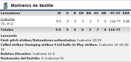 Iwakuma lanzó durante todo el juego y ponchó a siete rivales además de dar tres bases por bolas en el partido que los Marineros ganaron 3-0 a los Orioles de Baltimore. El japonés también se colocó como el primer pitcher que logra una hazaña de este tipo en casi tres años.