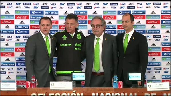 Antes de presentar al colombiano, Decio de María, presidente de la FMF, reconoció y aplaudió el trabajo de los jugadores que consiguieron el boleto para disputar la Copa Confederaciones Rusia 2017, así como lo hecho por Miguel Herrera y su cuerpo técnico por ganar la Copa Oro 2015.