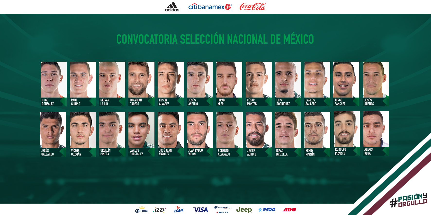 Chivas, Rayados y Tigres son los clubes que más aportan a la Selección, con cuatro futbolistas. Santos y América aportan tres; Cruz Azul aporta dos, y Atlas, Necaxa, Tijuana y Pachuca aportan un jugador.