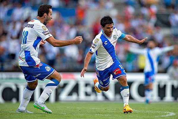 El delantero de Puebla empató el partido con su segundo gol. Foto de Mexsport