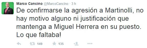 Reacciones en Twitter por agresión de Miguel Herrera - vspiojo_1 Reacciones en Twitter por agresión de Miguel Herrera - vspiojo_2 Reacciones en Twitter por agresión de Miguel Herrera - vspiojo_3 Reacciones en Twitter por agresión de Miguel Herrera - vspiojo_4 Reacciones en Twitter por agresión de Miguel Herrera - vspiojo_5 Reacciones en Twitter por agresión de Miguel Herrera - vspiojo_6