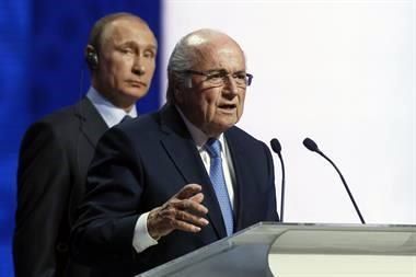 Vladimir Putin y Joseph Blatter. Foto de AP