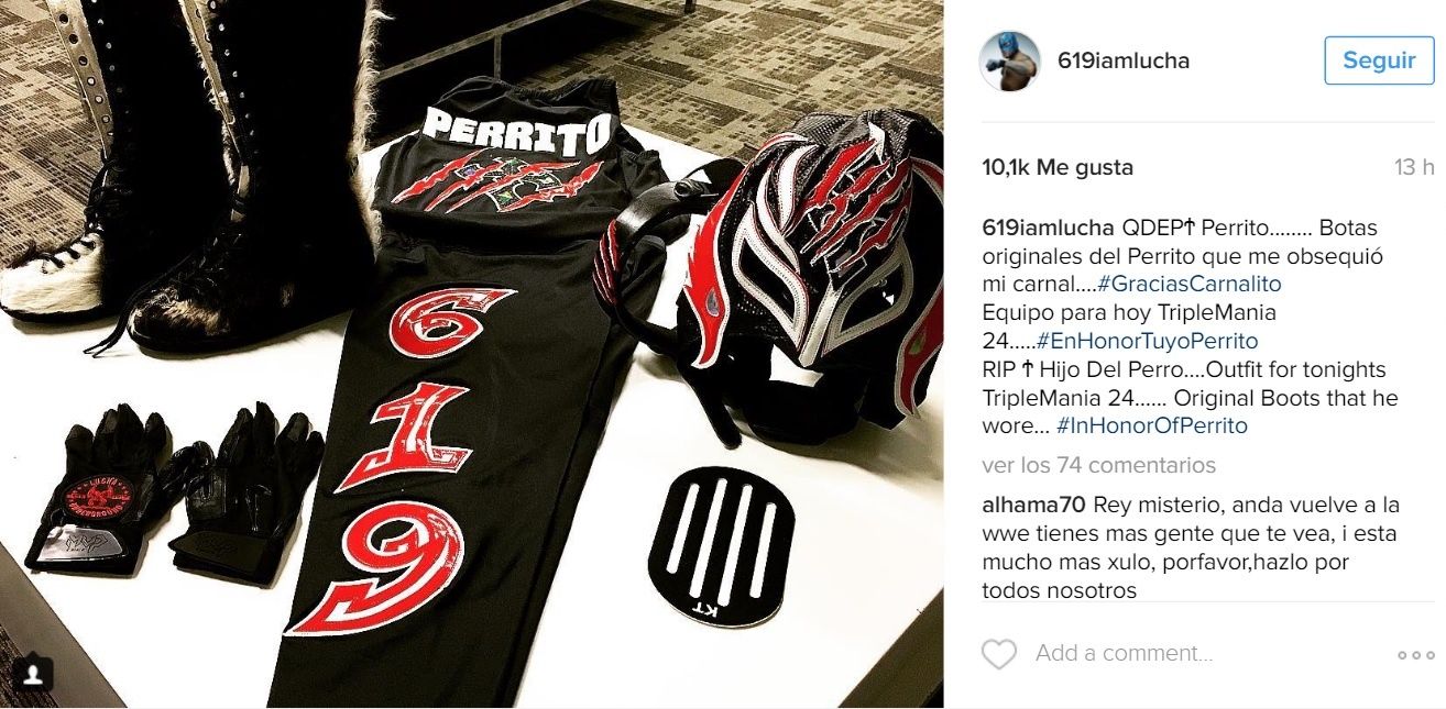 El luchador Rey Misterio rindió homenaje al Hijo del Perro Aguayo en la pelea del día de ayer en el TripleManía XXIV.