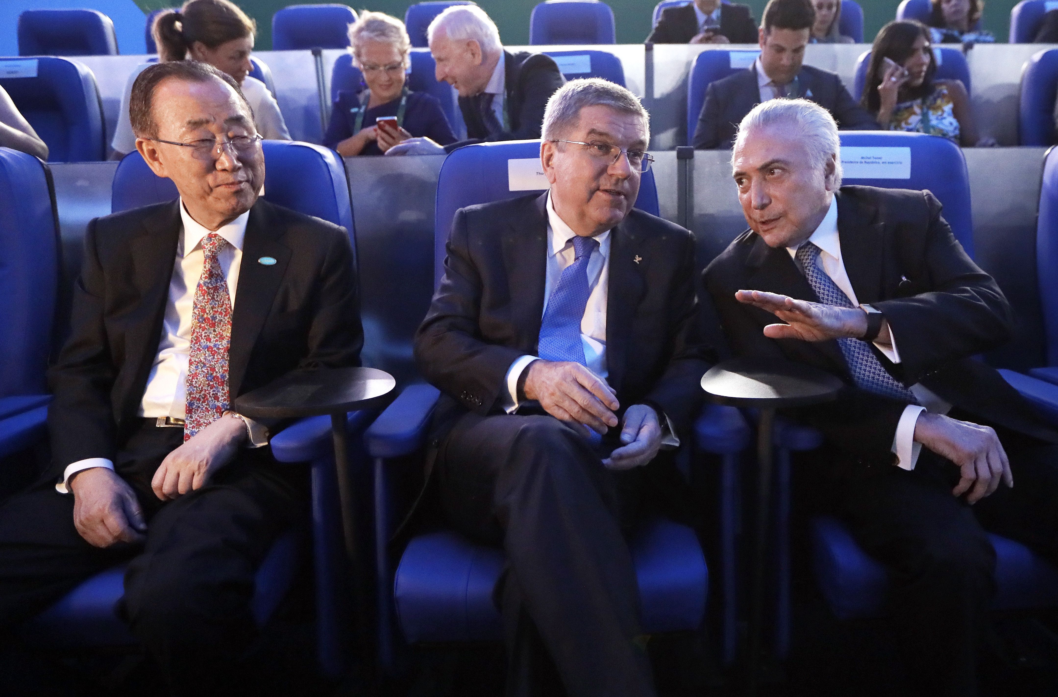 En el palco de honor, el líder olímpico Thomas Bach observaba acompañado por el presidente interino Michel Temer, un recordatorio de la crisis política por la que atraviesa el país y que amenaza con desbancar a la mandataria Dilma Rousseff. Mientras, cerca del estadio, algunos manifestantes chocaron con la policía durante protestas contra unos Juegos Olímpicos que arrancan precedidos por la peor recesión del país desde la década de los 30, escándalos de corrupción y problemas de contaminación del agua.