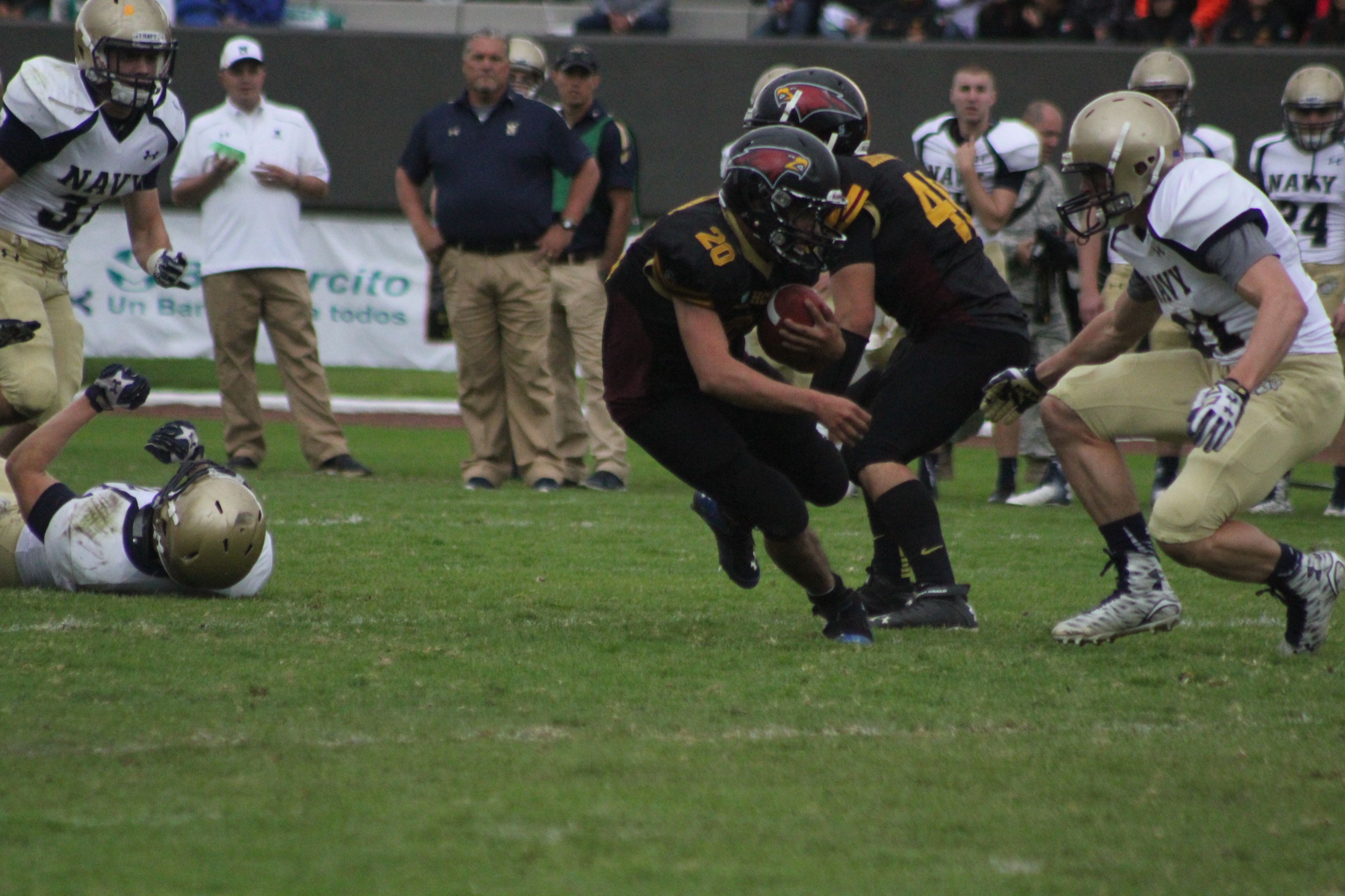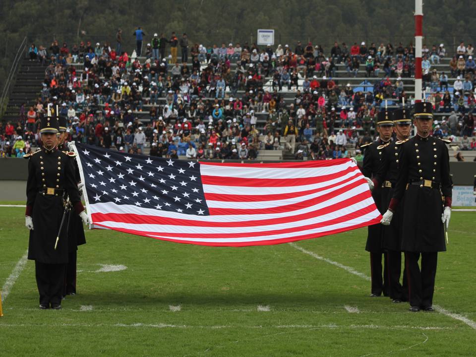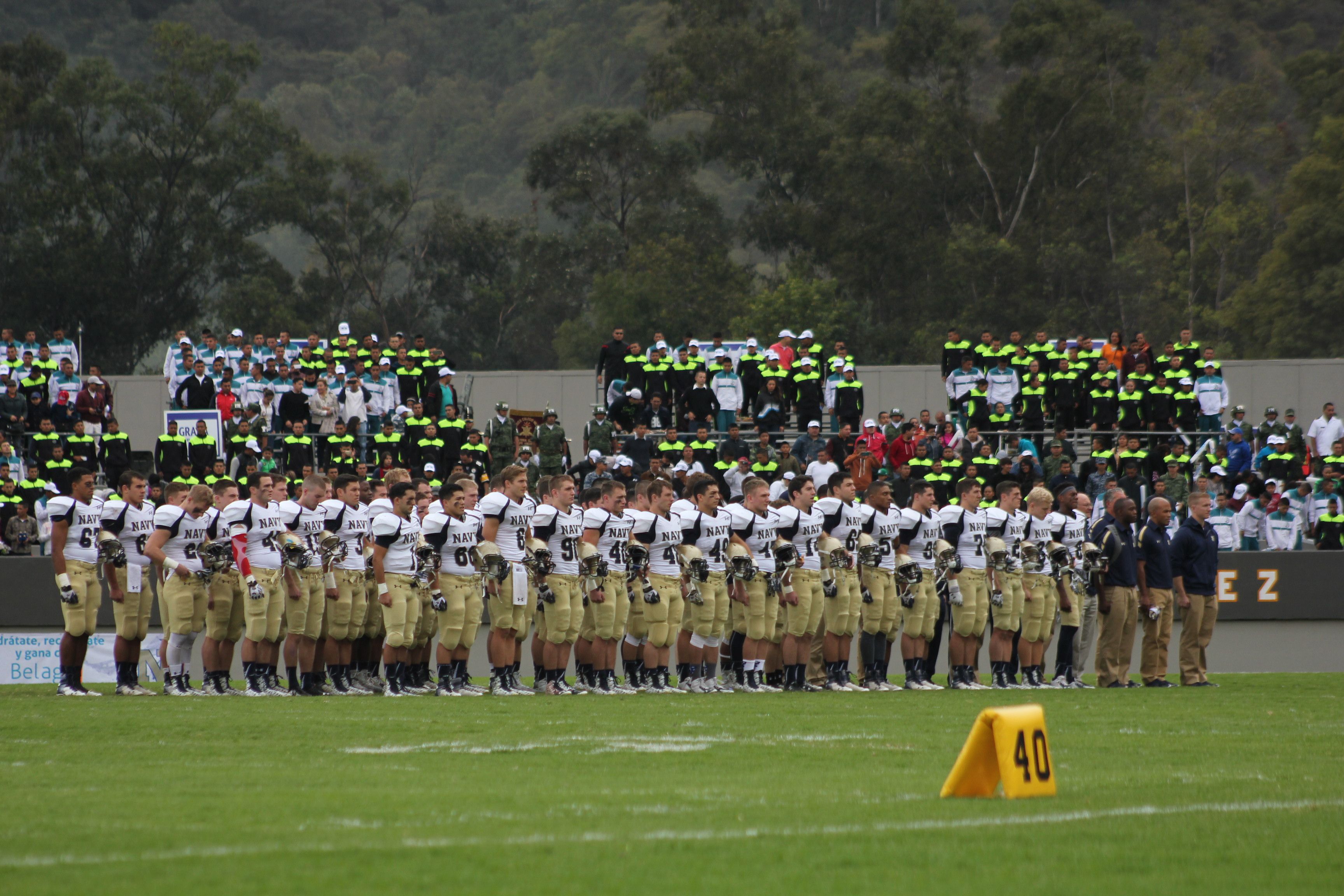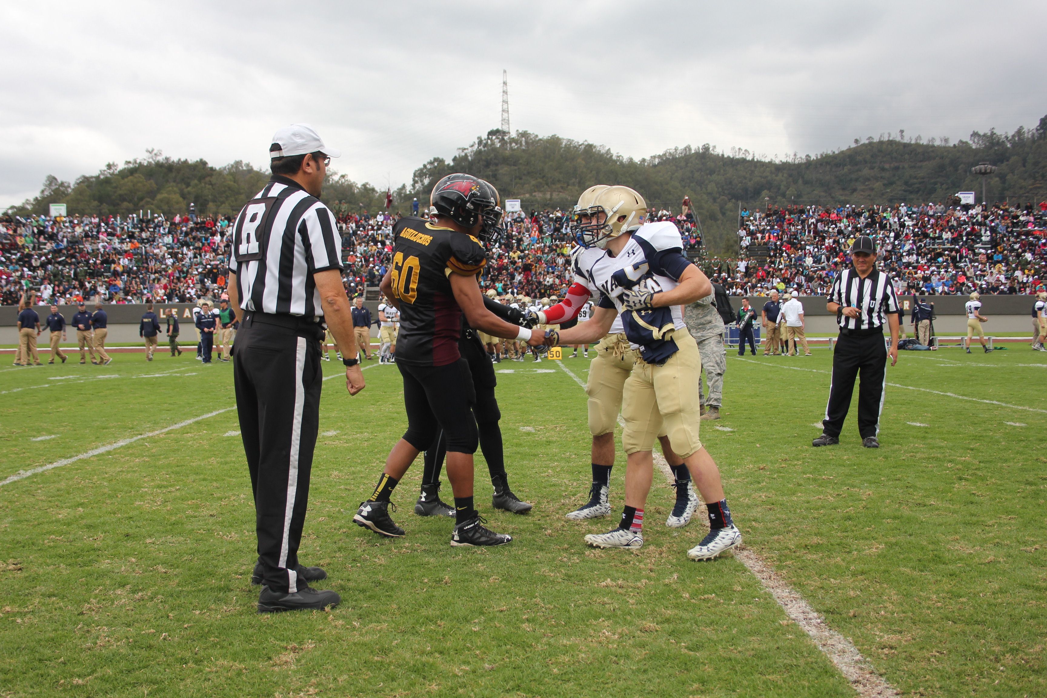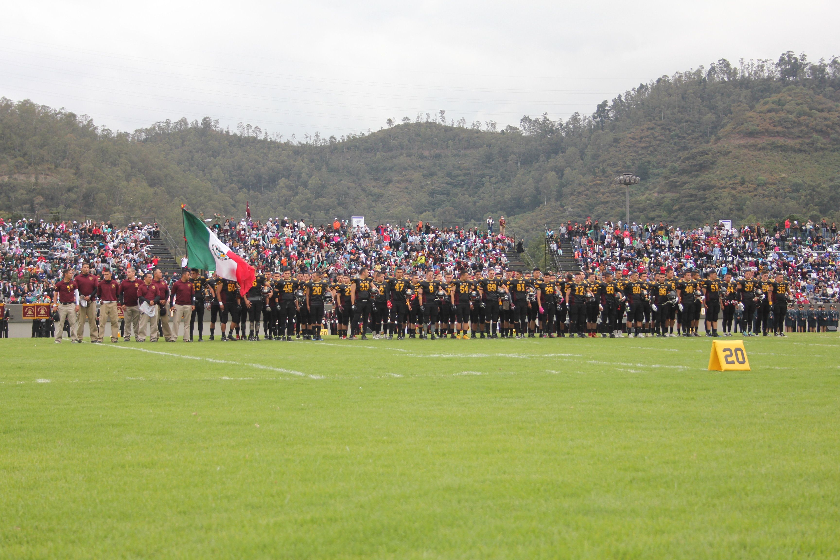 Este domingo, en instalaciones del Heroico Colegio Militar, se enfrentaron en un encuentro de futbol americano la selección de los cadetes de la Academia Naval de los Estados Unidos y el equipo “Aguiluchos”, integrado por cadetes de la Secretaría de la Defensa Nacional.