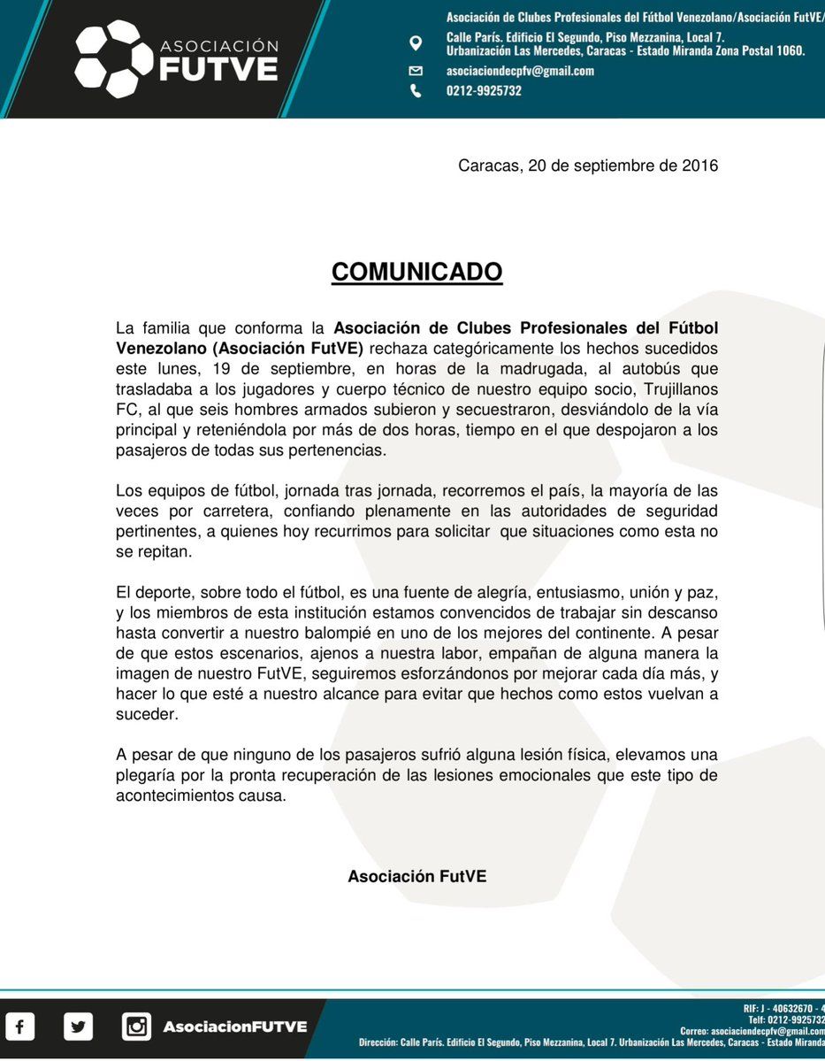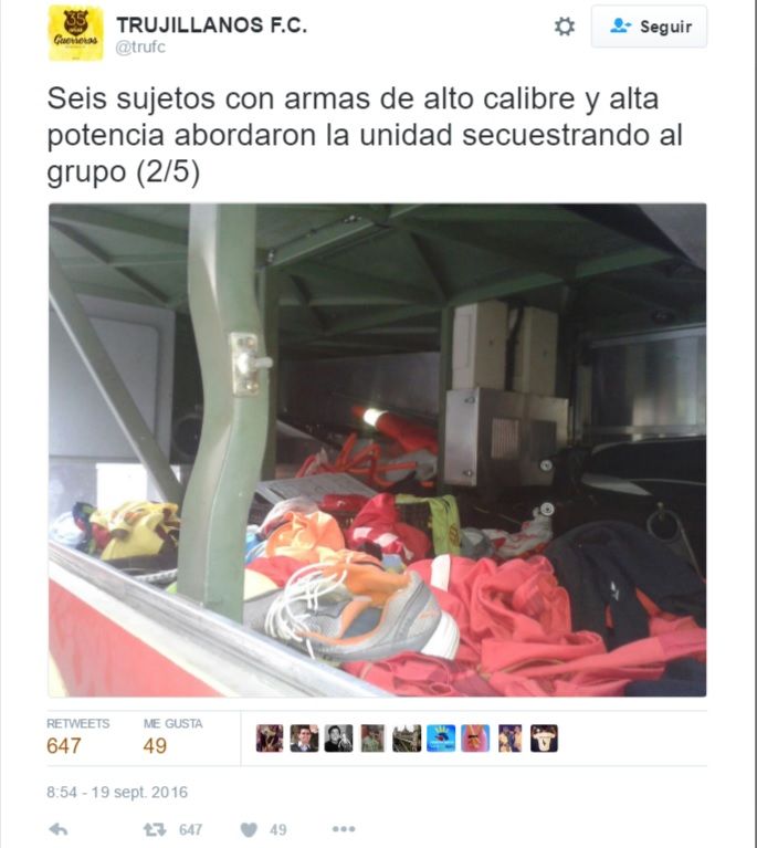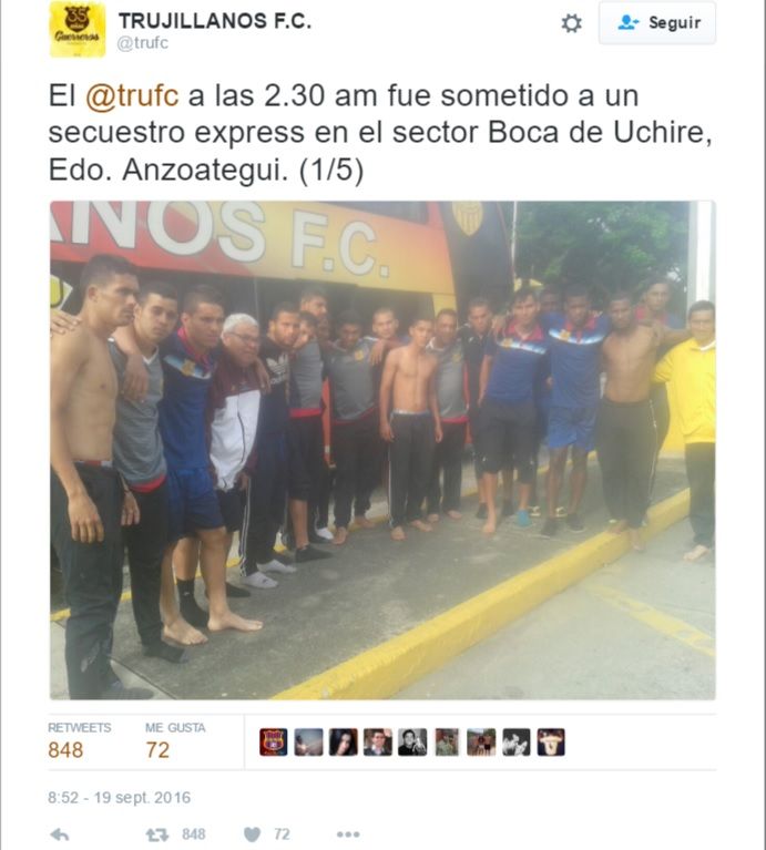 El equipo venezolano Trujillanos Futbol Club fue víctima de un secuestro y robo cuando regresaban a su sede luego del encuentro disputado ante el Monagas Futbol Club.