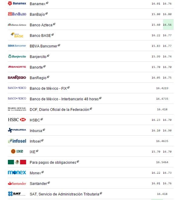 El dólar libre hoy se vendió en un precio máximo de 16.78 pesos, dos centavos menos en comparación con el cierre del viernes pasado
