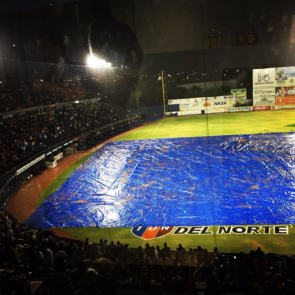 Tras poco más de una hora de partido en el Estadio Monclova, los Acereros ganaban 2-0 gracias a un jonrón de Hernando Arredondo pero una fuerte lluvia obligó a suspender el partido.