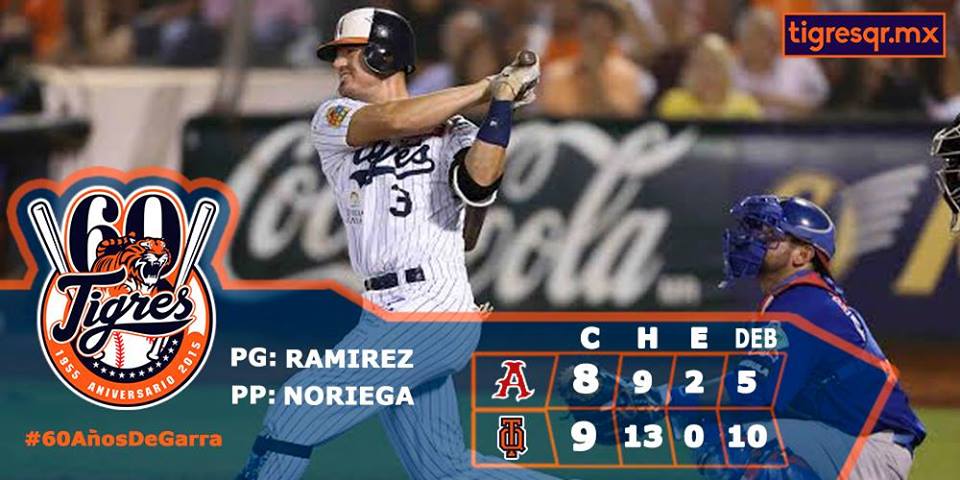 Tigres obtendría la victoria al cierre de la novena cuando Quiroz mandó un hit por el lado de la primera base que impulsó a Brandon Villarreal hasta home.