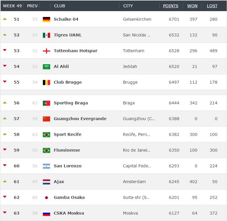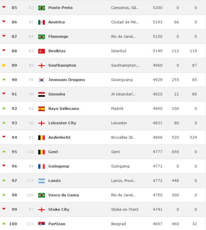 Por su parte, los de Coapa están en el puesto 86, con 5 mil 193 puntos, habiendo sumado 66 puntos en el último mes, aunque con ello descendió una posición gracias al ascenso de equipos como el Fenerbahçe de Turquía o el Ulsan de Corea del Sur.